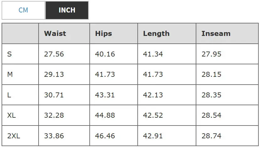 Pant Size Table: