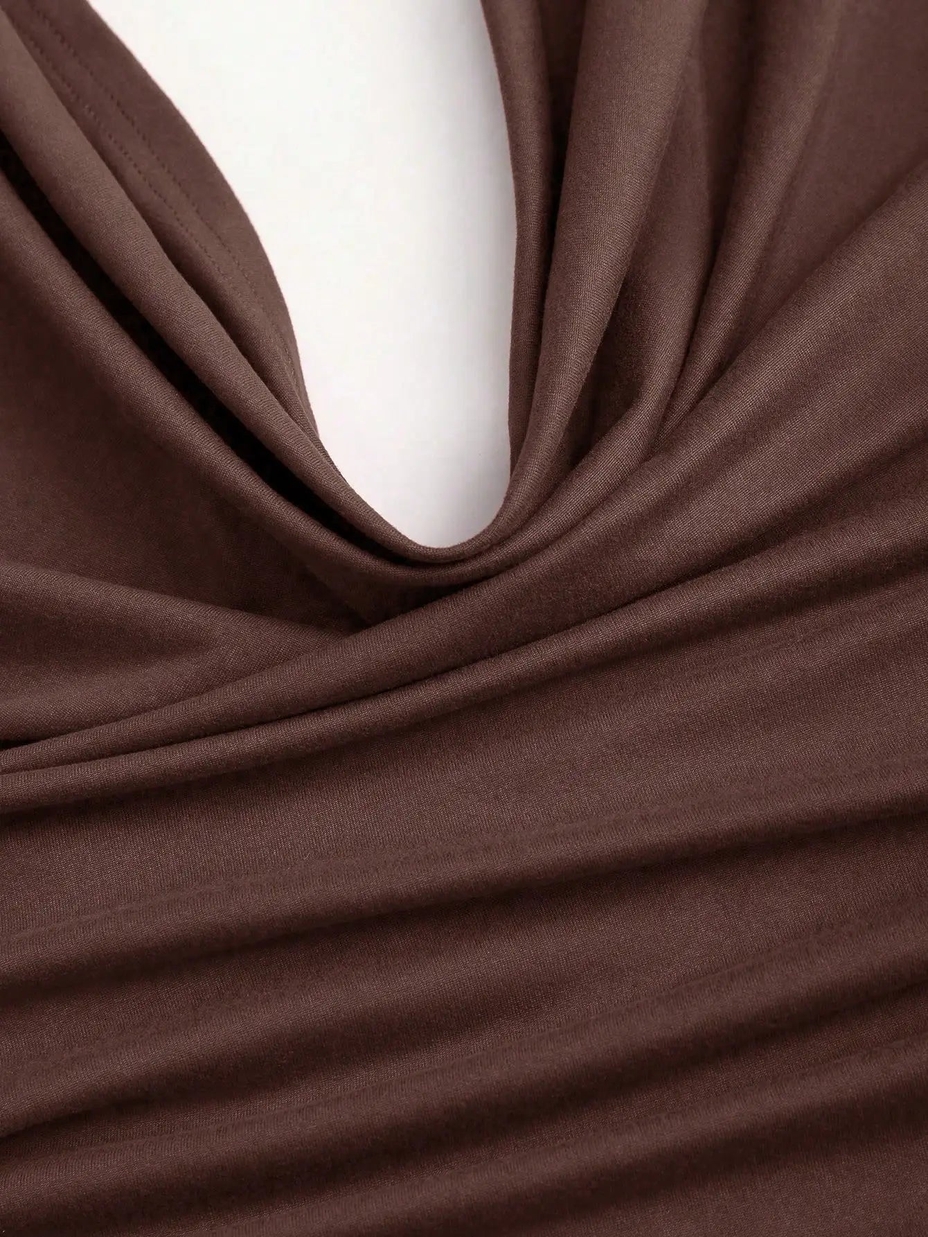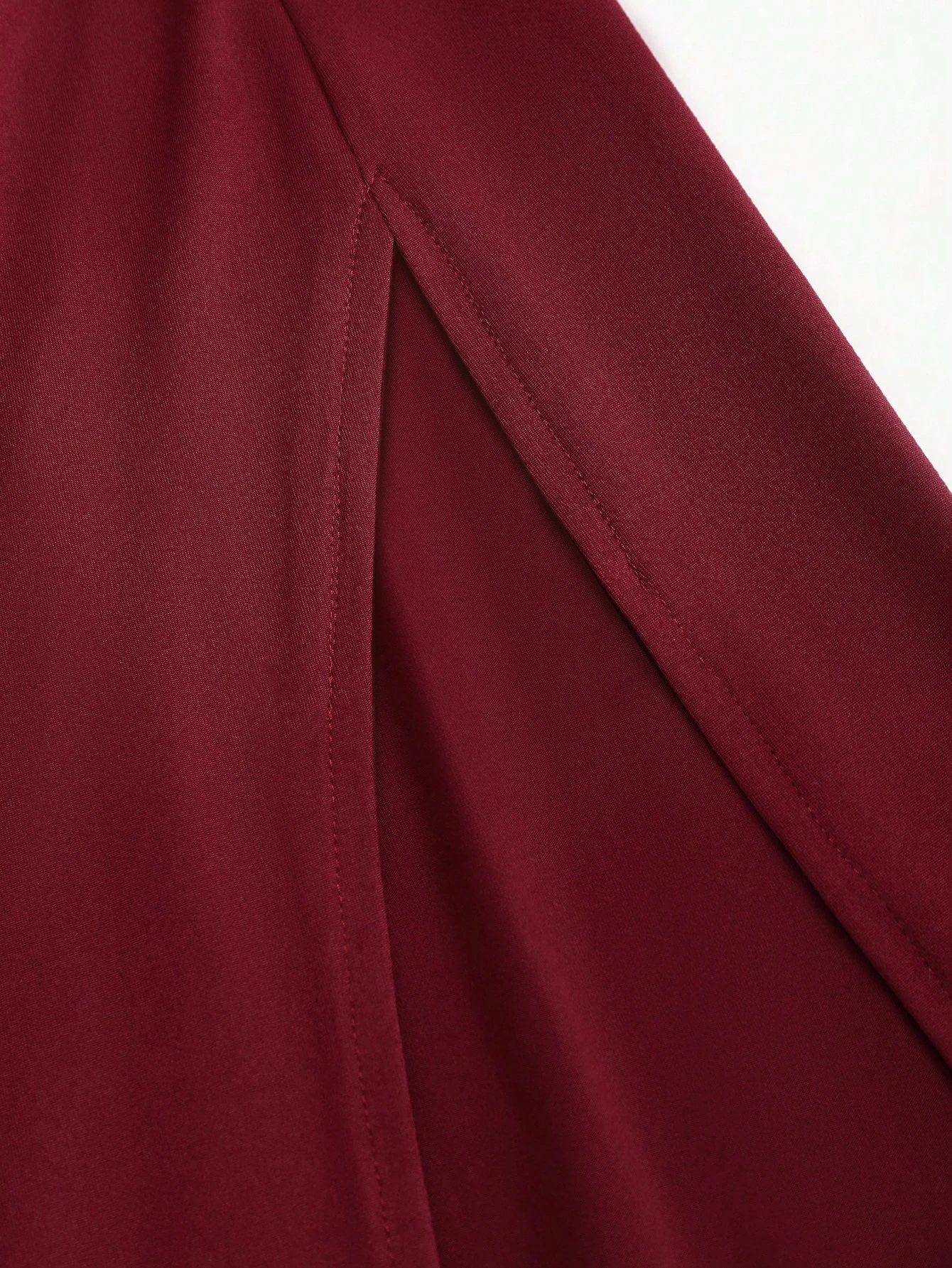 New Fashionable and Elegant Hanging Neck Top+Split Simple Solid Half Skirt Set