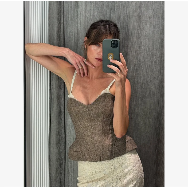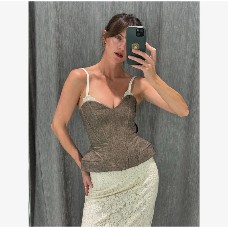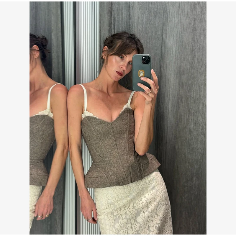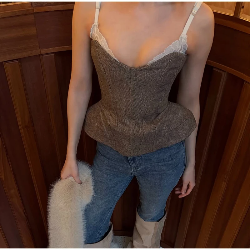 Women Spaghetti Strap Corset Top Female Panelled V-neck Sleeveless Backless Slim Fishbone Blouse 2026 Lady Party Evening Tops