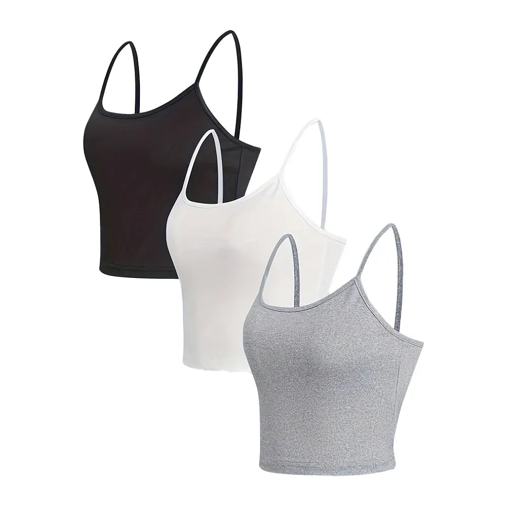 3 Pack Solid Color Cami Top Versatile Slim Backless Spaghetti strap Top For Summer Women's Clothing