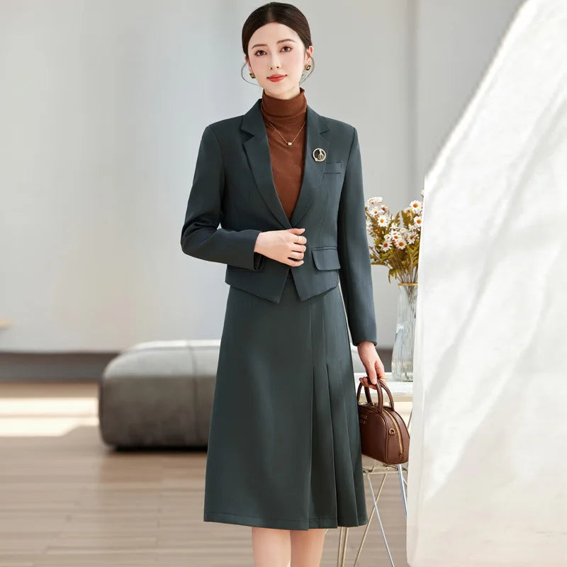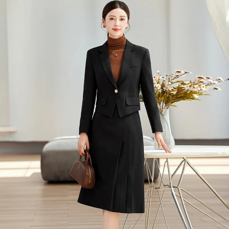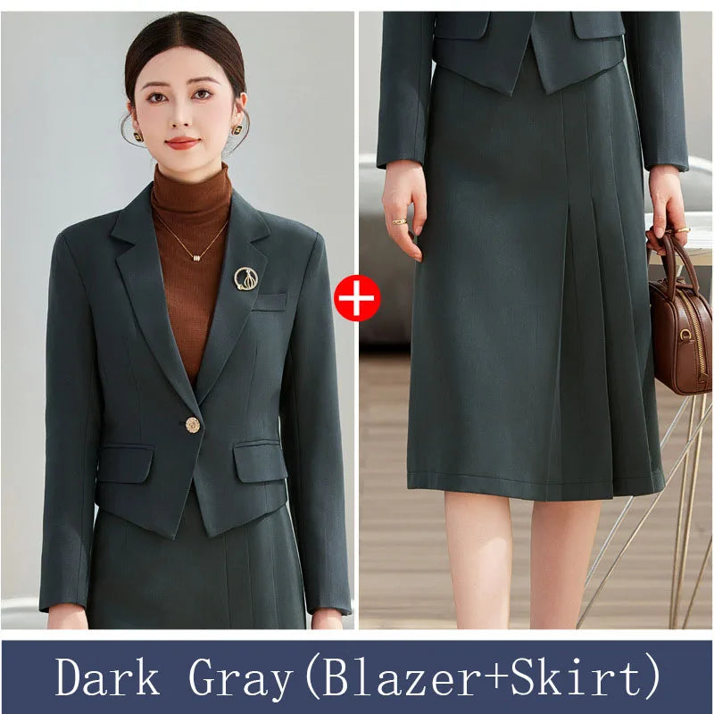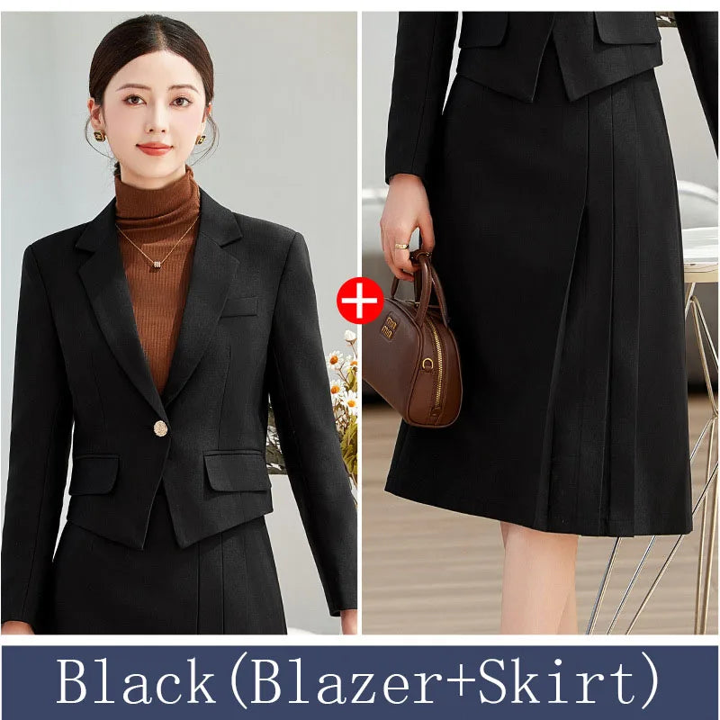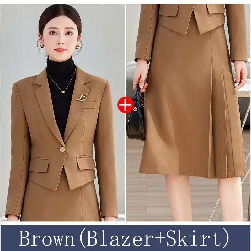 Elegant Ladies Autumn Blazer Set with Skirt Women 2 Piece Outfit 2024 Fashion Long Sleeve Jacket Suit Office Lady Dress Set