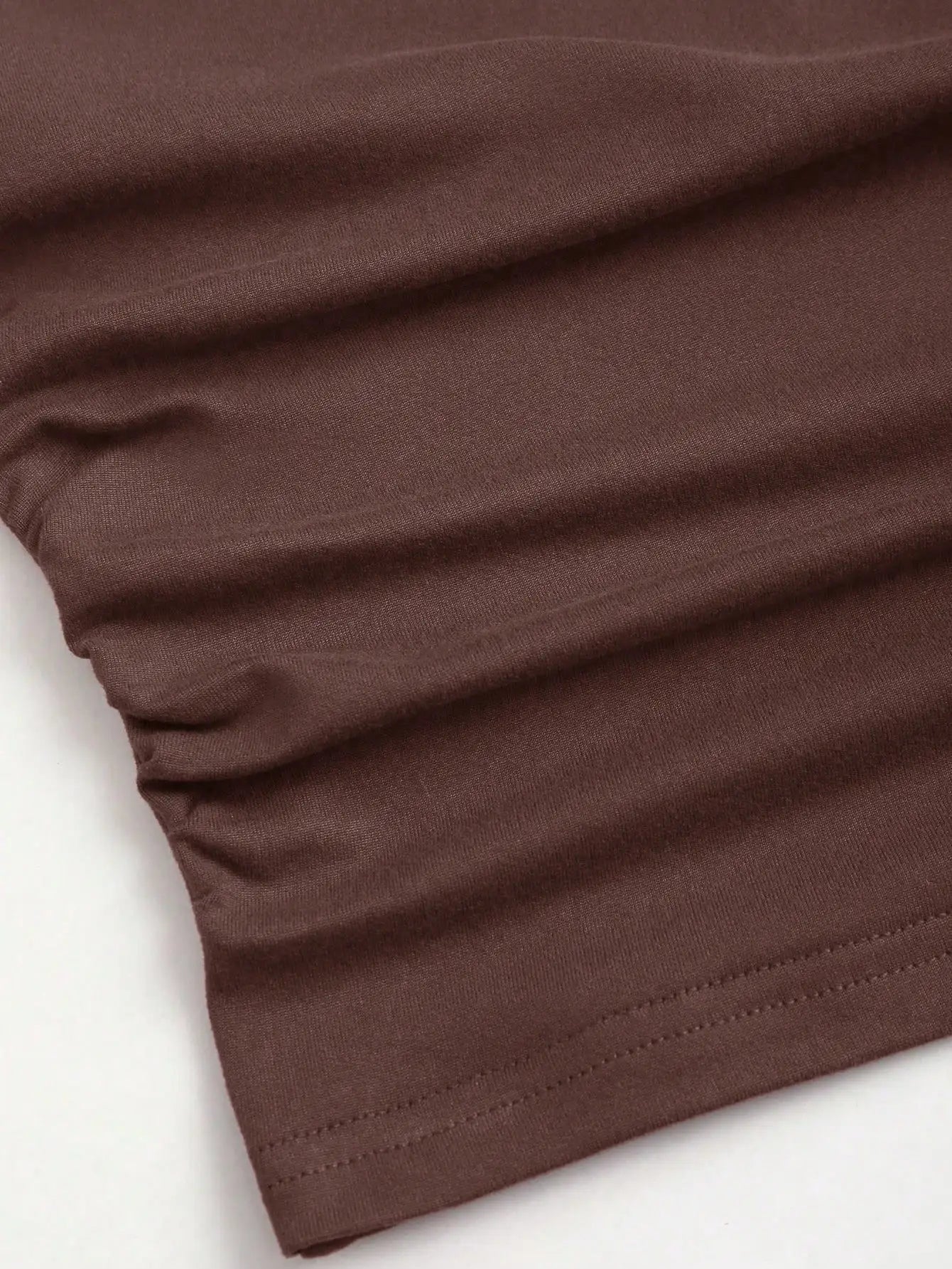 New Fashionable and Elegant Hanging Neck Top+Split Simple Solid Half Skirt Set