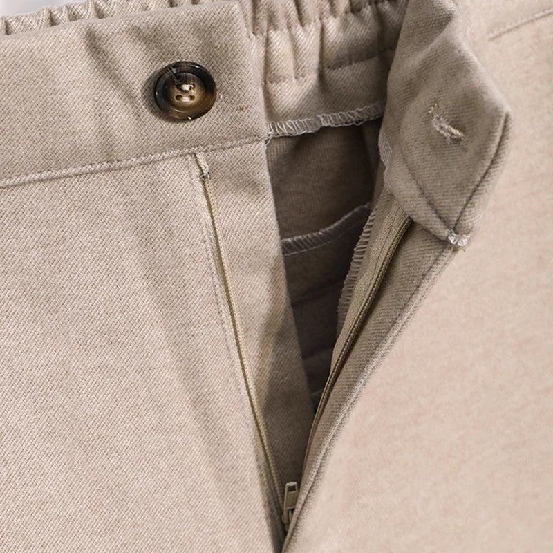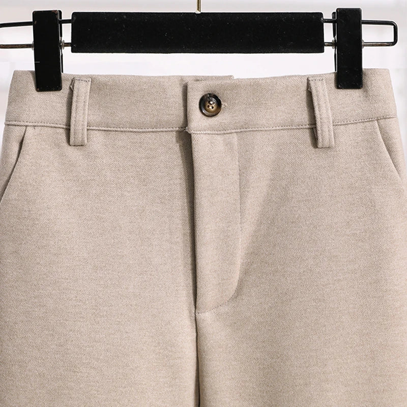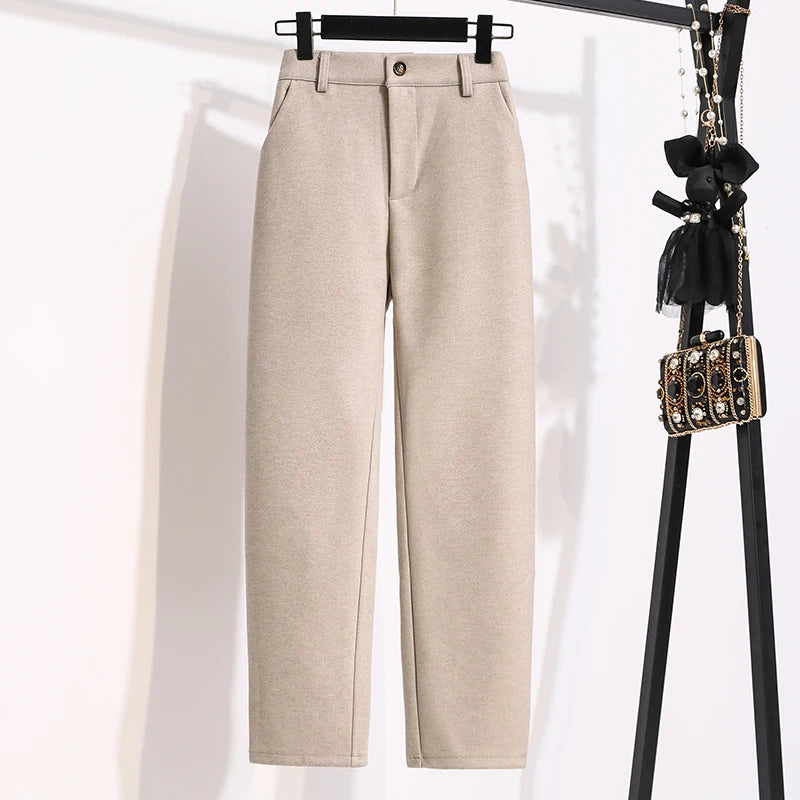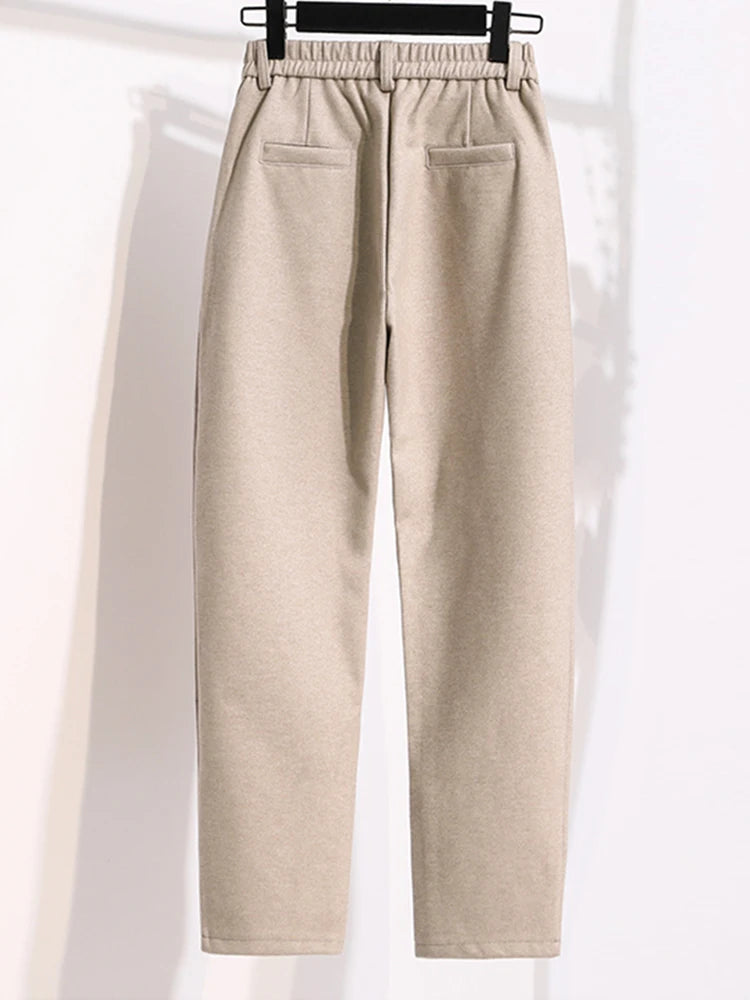Plus Size Woolen Pants Women 2024 Autumn Winter New Arrivals Beige Or Black Suit Pants Trousers Korean Style Elastic Waist Pants