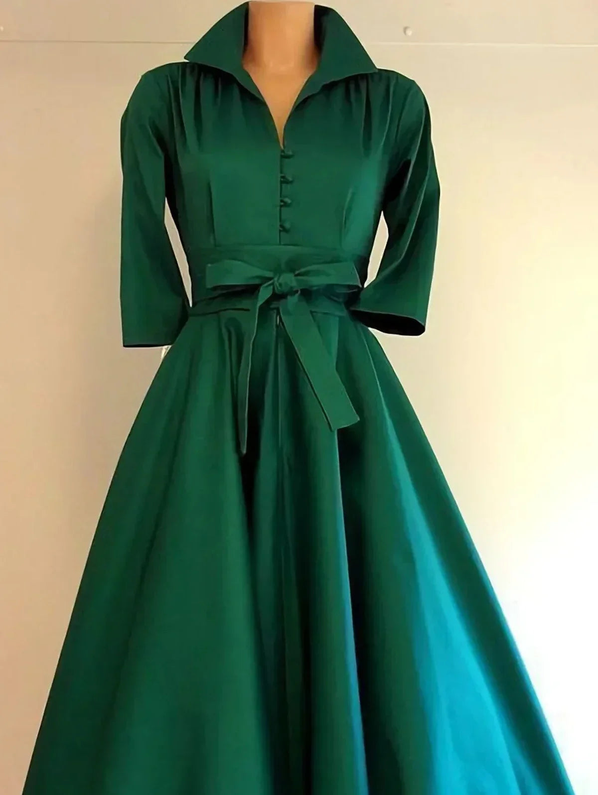 Women Elegant Turn Down Collar Dress Long Sleeve Solid Vintage Solid A-Line Party Club Fashion Autumn Female Dress with Belt