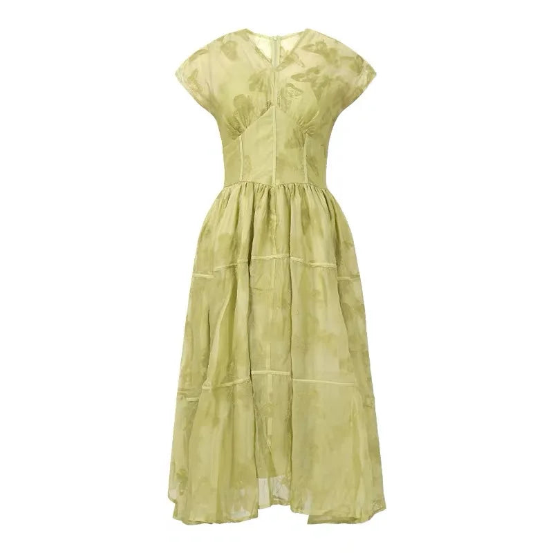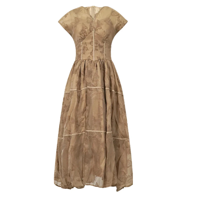 Women's French Retro Long Dress Fashion Grey Printed Short Sleeve Corset Large Swing Ball Gown Femme Party Banquet Vestidos