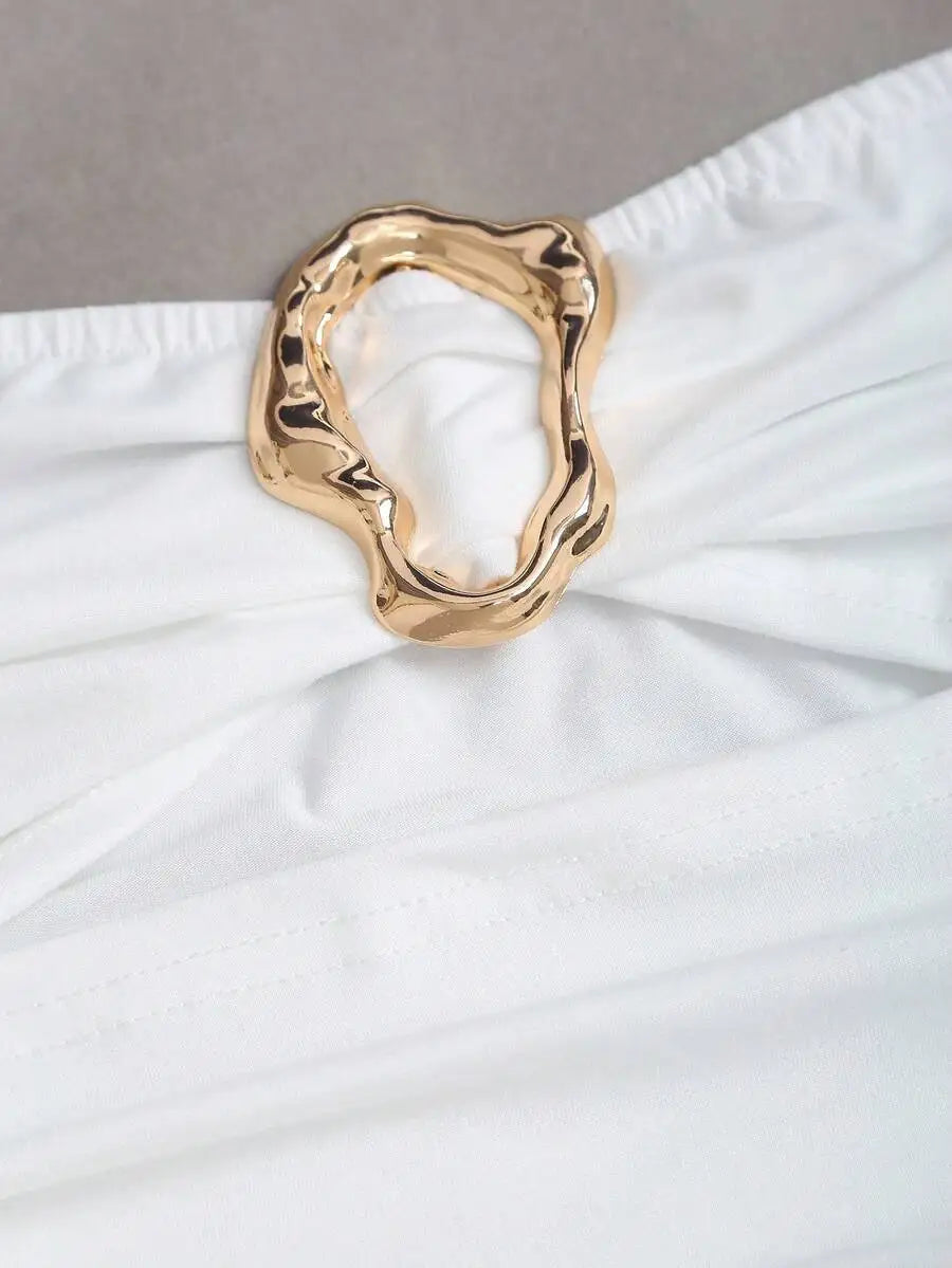 Women's Sexy Slim-Fit Strapless Bustier Mini Dress with Metal Buckle